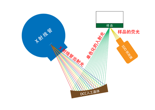單色激發(fā)能量色散X射線熒光(Monochromatic Excitation Beam Energy Dispersive X-Ray Fluorescence)分析技術(shù),就是采用光學(xué)器件將X射線光管出射譜單色化,進(jìn)而使得熒光光譜的連續(xù)散射背景極大地降低,同時(shí)盡可能少的降低甚至于可能的話增加所需激發(fā)X射線的單色化的線或窄能量帶的強(qiáng)度,從而大大降低了檢出限。相比傳統(tǒng)的EDXRF降低了1至2個(gè)數(shù)量級(jí),相比大功率(如4kw)的WDXRF也要低得多。