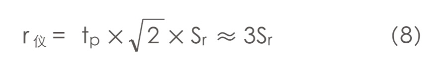 為與表2所列標(biāo)準(zhǔn)相一致,測硫儀的重復(fù)性r儀也要求:同一個操作者,在同一個實驗室,使用同一臺測硫儀,在相同條件下對同一試樣采用正確的操作方法連續(xù)進(jìn)行測定,得到的兩個示值之差,20個中僅有1個超過測硫儀的重復(fù)性r儀,也就是95%置信度。我們可以對這些示值進(jìn)行標(biāo)準(zhǔn)偏差計算,得到重復(fù)性標(biāo)準(zhǔn)偏差Sr,95%置信度下,r儀就是3倍的Sr,為: